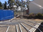 Today, with the help of my mate Simon and his crane, we started erecting the frames. Slow going at first, and it took all morning to erect two frames. I sent Simon home at lunch, as I realised I had … Continue reading