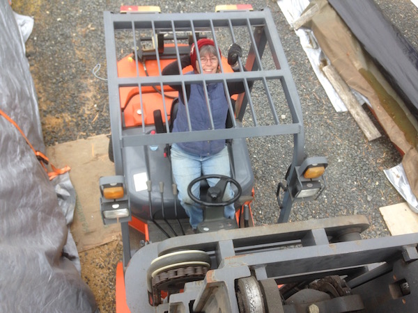 Deb driving the forklift