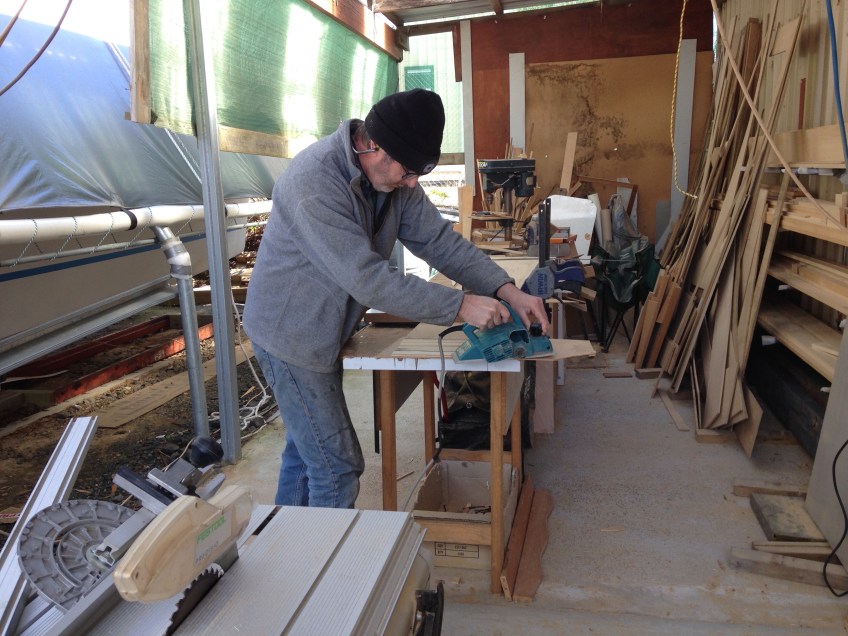 Pete scarffing the galley bench.
